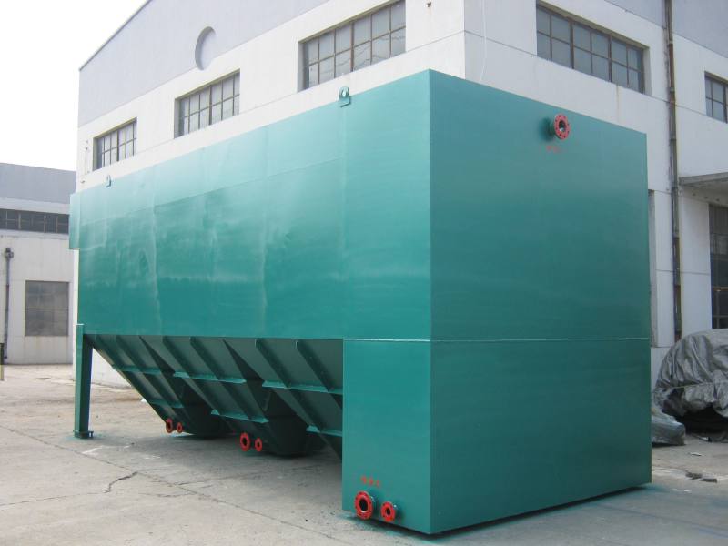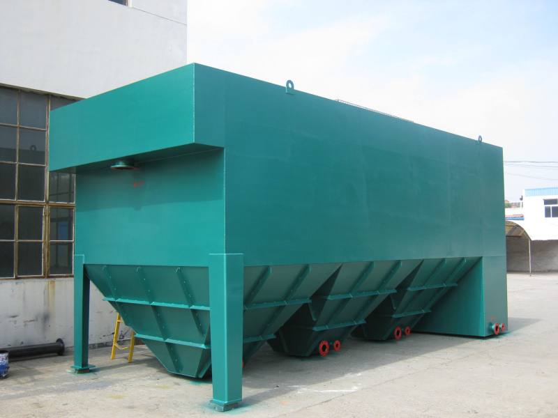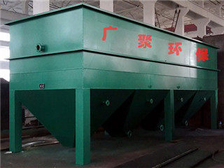 在沉淀区域设置许多密集的斜板,使水中悬浮杂质在斜板进行沉淀,水沿斜板上升流动,分离出的泥渣在重力作用下沿着斜板向下滑至池底,在集中排出。这种池子可以提高沉淀效率50~60%,在同一面积上可提高处理能力3~5倍。该设备适用于电镀、煤矿、选矿、印染、漂染、制革、食品、化工等工业废水的处理。