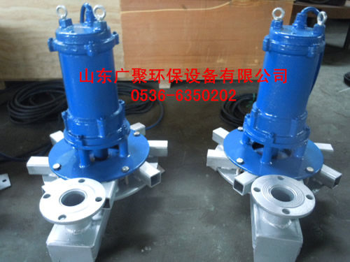离心式潜水曝气机为直联式结构旋转的叶轮在水中产生一个离心力,通过离心力在叶轮周围形成一个负压区,空气通过进气管被吸入,被吸入的空气和水在混合盘内混合,随后这种良好的均匀的混合物自动从排出口排出。