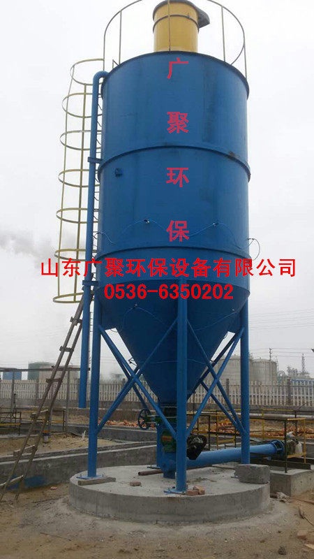 石灰仓为圆柱形结构,底部由四条圆管支腿支撑整个仓体,整仓全部为钢结构形式,焊接而成;顶部设有除尘器及压力安全阀。