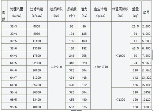 全系列共有 33 种规格,滤袋直径均为130mm ,滤袋长度有 2450mm 和 3060mm 两种。能负压或正压操作,其本体结构无任何改变,除尘效率可达 99.9% 以上,净化后气体的含尘浓度小于 50mg/m3 (标)。